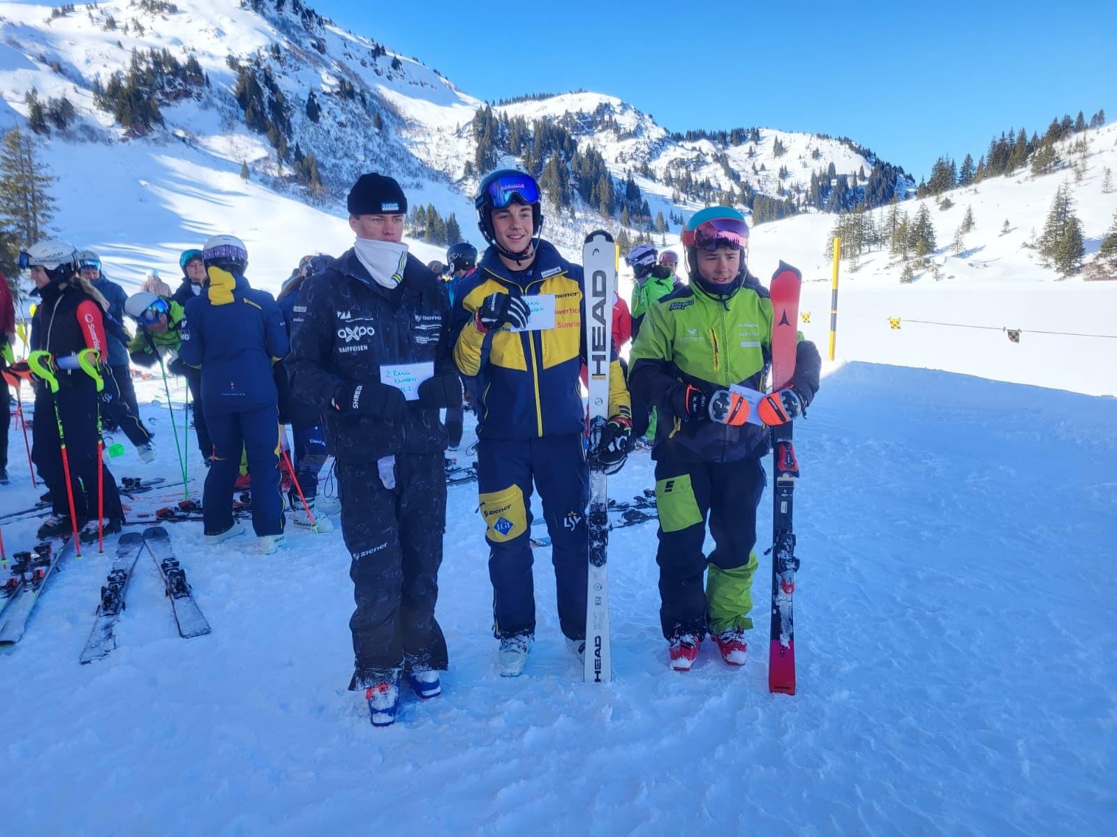 Auch bei den Herren gab es starke Resultate: Silas Caduff (US Lumnezia) glänzte am ersten Renntag mit Rang 2. Nevio Tönett (SC Beverin) fuhr direkt hinter ihm auf den starken 3. Platz, Timo Hartmann (SC Buchen) komplettierte das Top-5-Ergebnis mit Rang 5.
